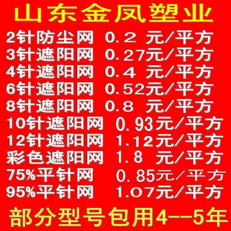 The shading rate of flat needle net is 95%, and the shading rate of flat needle net is 95% for 5 years without hemming. The shading rate of 12-pin color net is 95% without hemming.