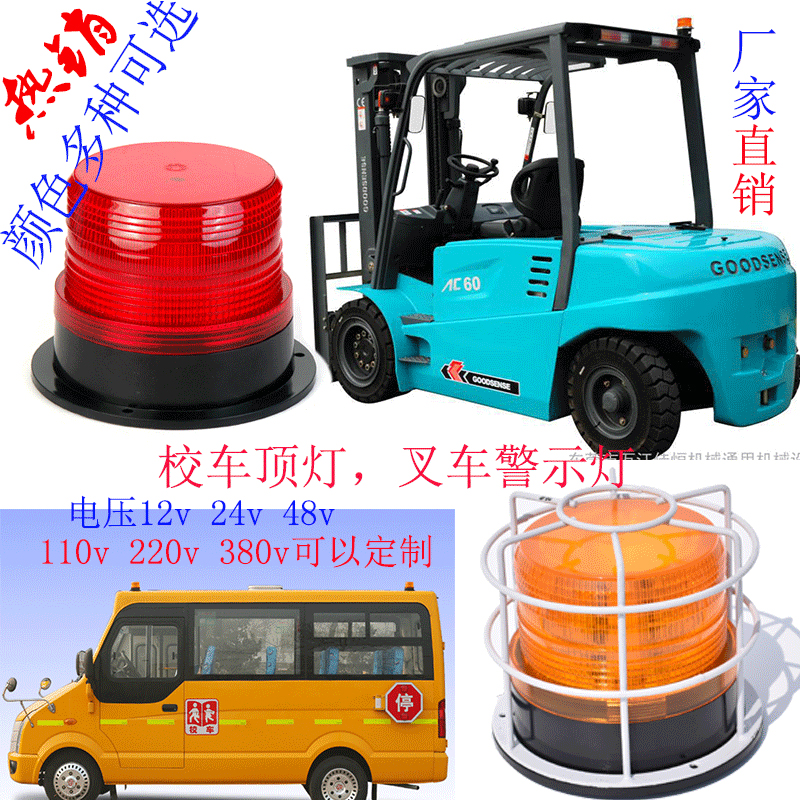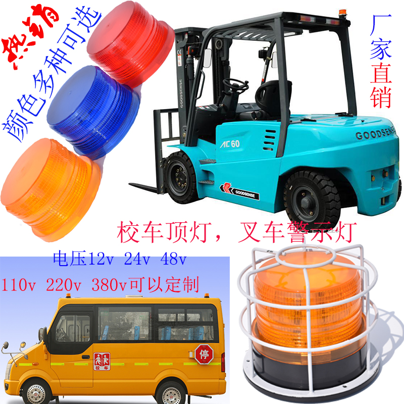 LED48v red pile high machine alarm light blue light 12v24 yellow school bus suction top light engineering car strong magnetic attraction explosion warning light