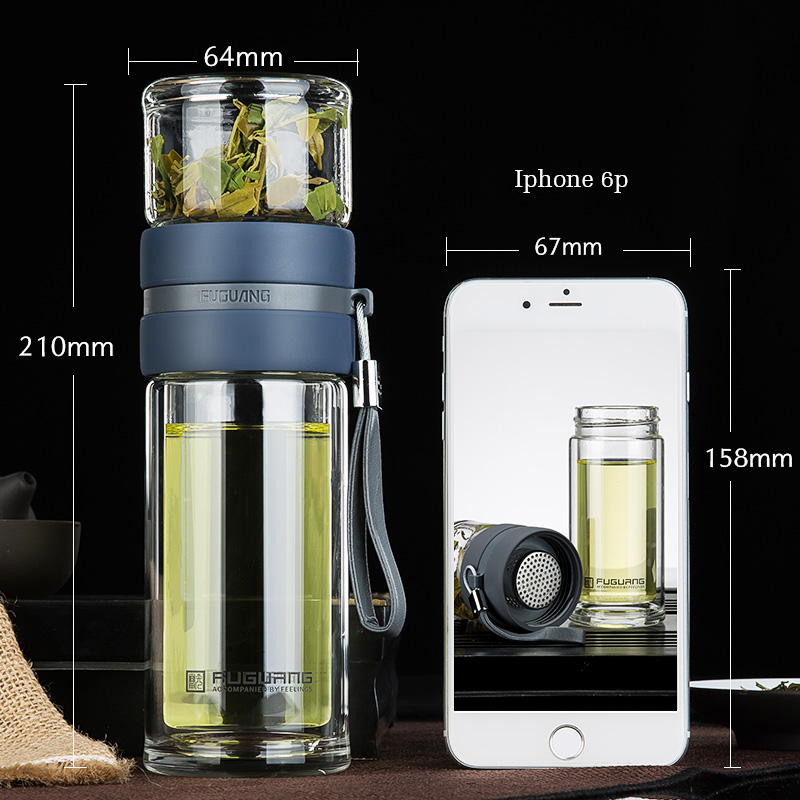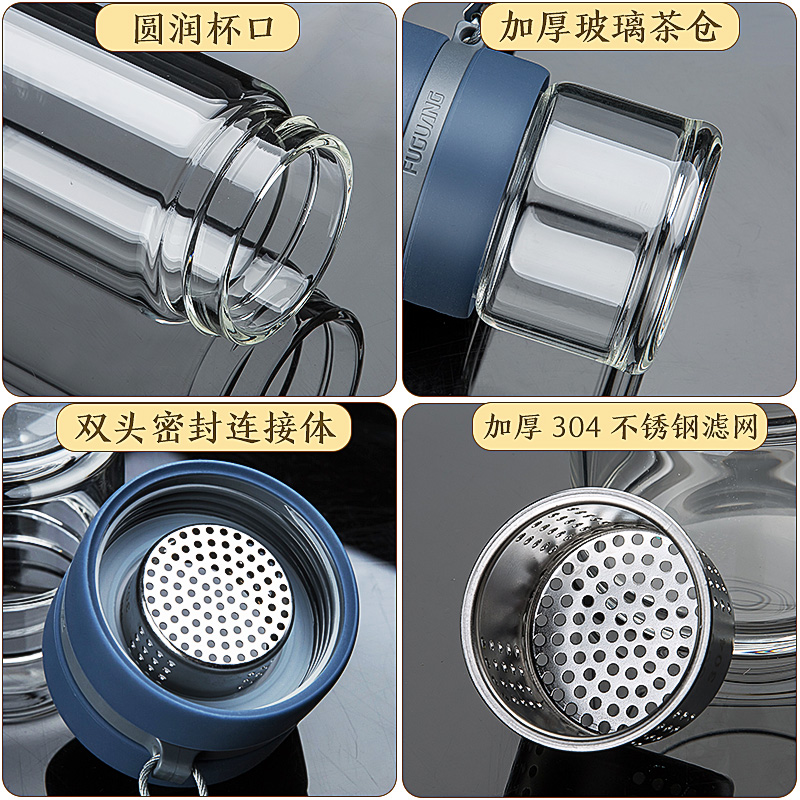 Fuguang double glazed glass cup on-board filter mug glass male water cup portable transparent office cup tea water separation tea maker