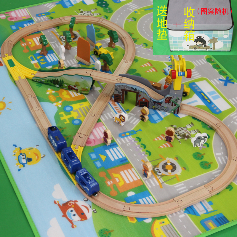 Wooden track small train toy set Electric Harmony train children boy toy car assembly wooden 3