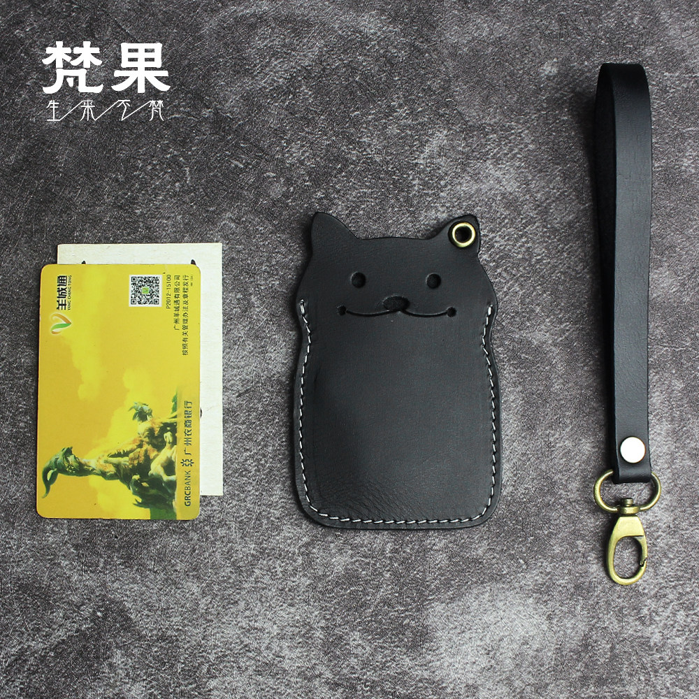 Handmade leather bus card card sleeve cowhide retro cartoon subway meal card card sleeve creative access control card protective sleeve tide