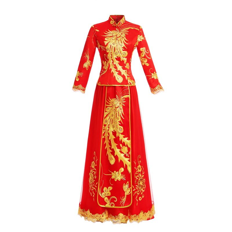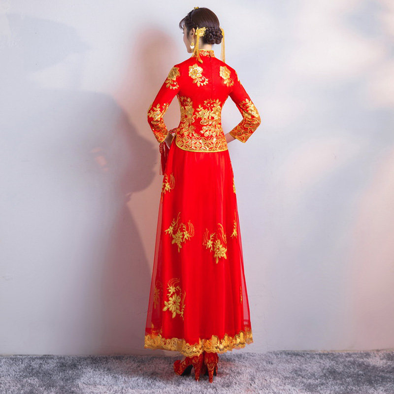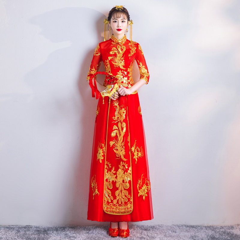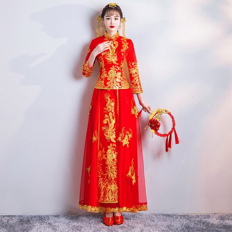 Show and dress 2021 new wedding toast bridal gown with long version pregnant woman wedding gown qipao dragon and phoenix