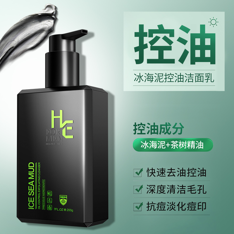 Hearn Men's Ice Sea Mud Cleansing Milk Control Oil, Remove Blackheads, Lighten Acne Prints, Moisturizing Cleanser, Cleansing Skin Care Products