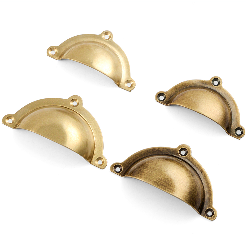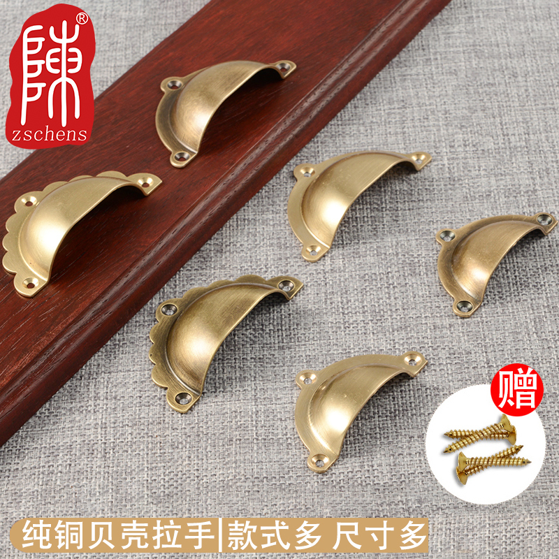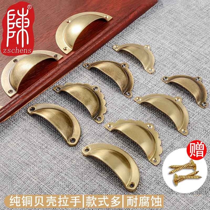 Chinese Antiquarie Hand Retro Pure Copper Shell Handle Drawer Cabinet Draw Cabinet Clean Old Golden Small Hand