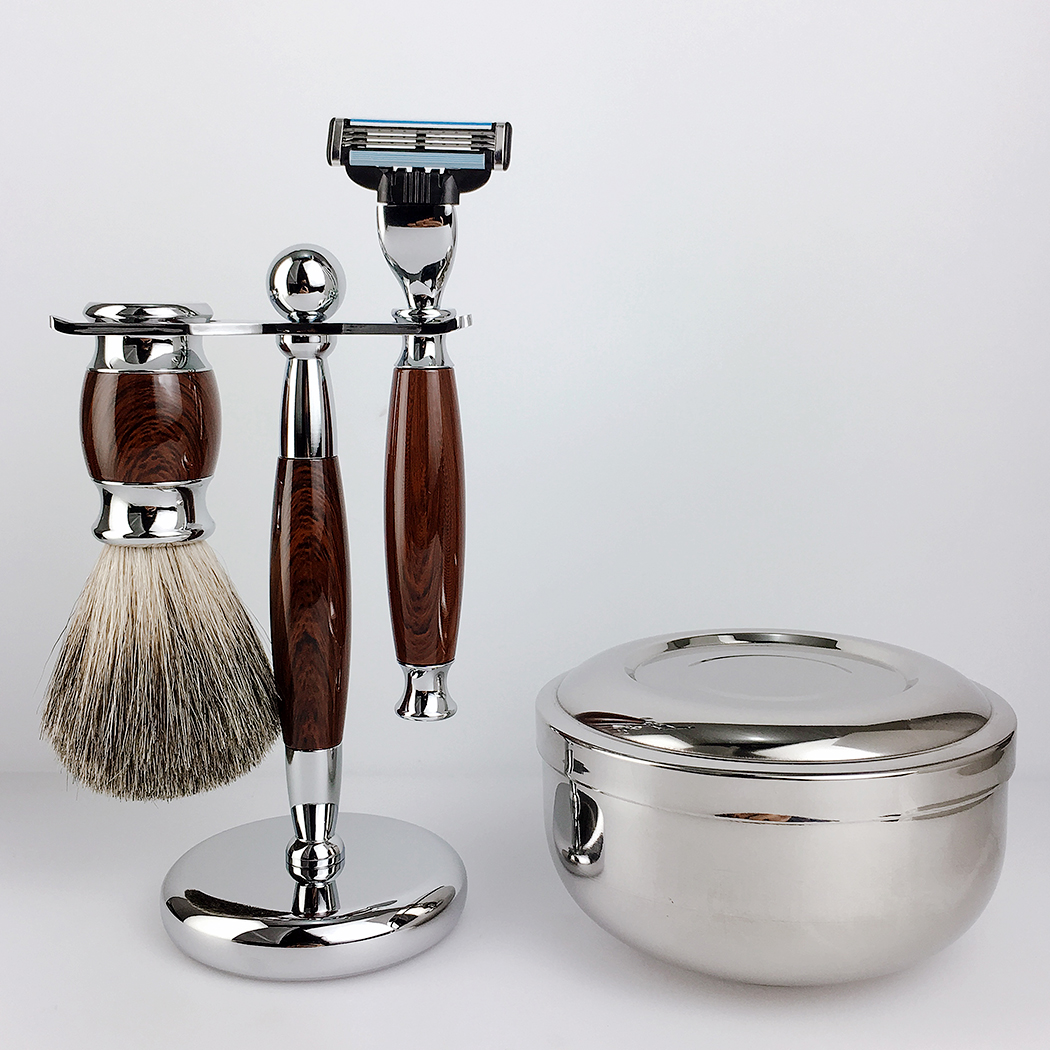 Retro wood grain Manual shaving with razor shave knife 3-layer blade razor Old-fashioned Beard Knife Scraper Gift Box Set Accessories