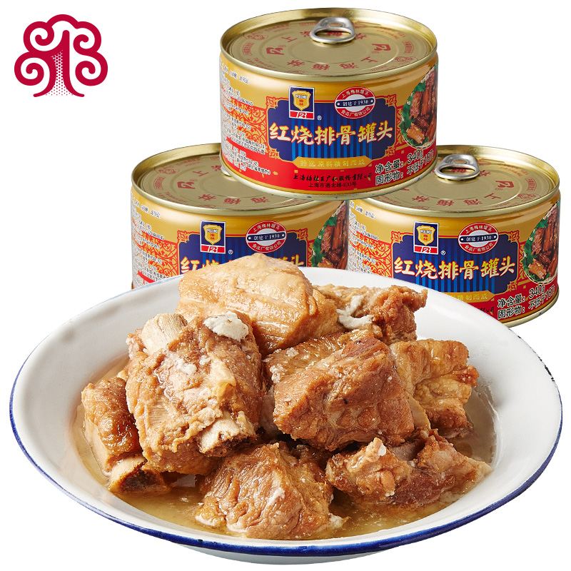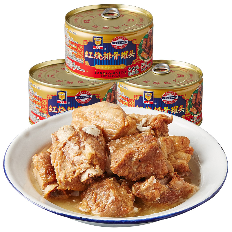 Merlin Braised Pork Ribs Canned Pork Food Outdoor Ready-to-eat Cooked Vegetables Shanghai Specialty 340g*3 Cans