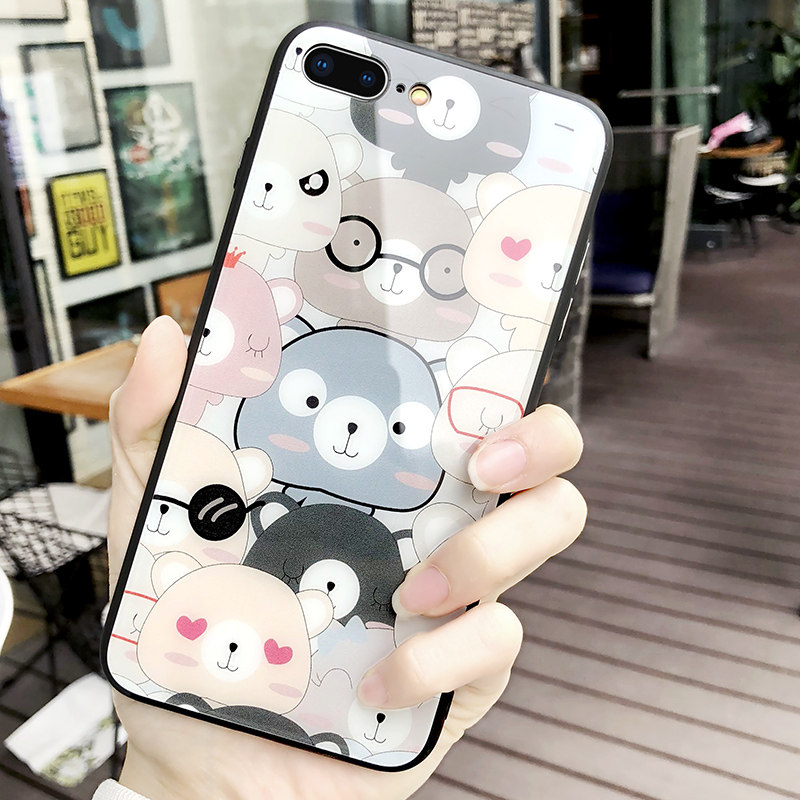 DZ Apple 7plus mobile phone protects the shell of women soft side glass 6plus button bear 6s protective suit iPhoneX new Apple 8plus anti-slip 7p cartoon 6splus