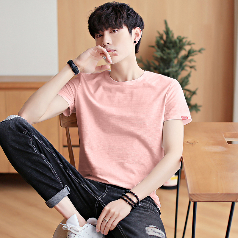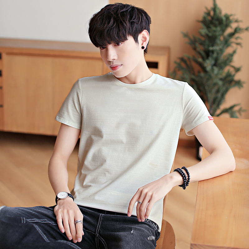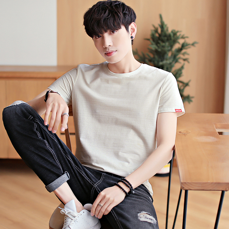 Short sleeve t-shirt man 2022 Summer new Korean version pure cotton round collar T-shirt Pure color Young students hit the bottom of the shirt