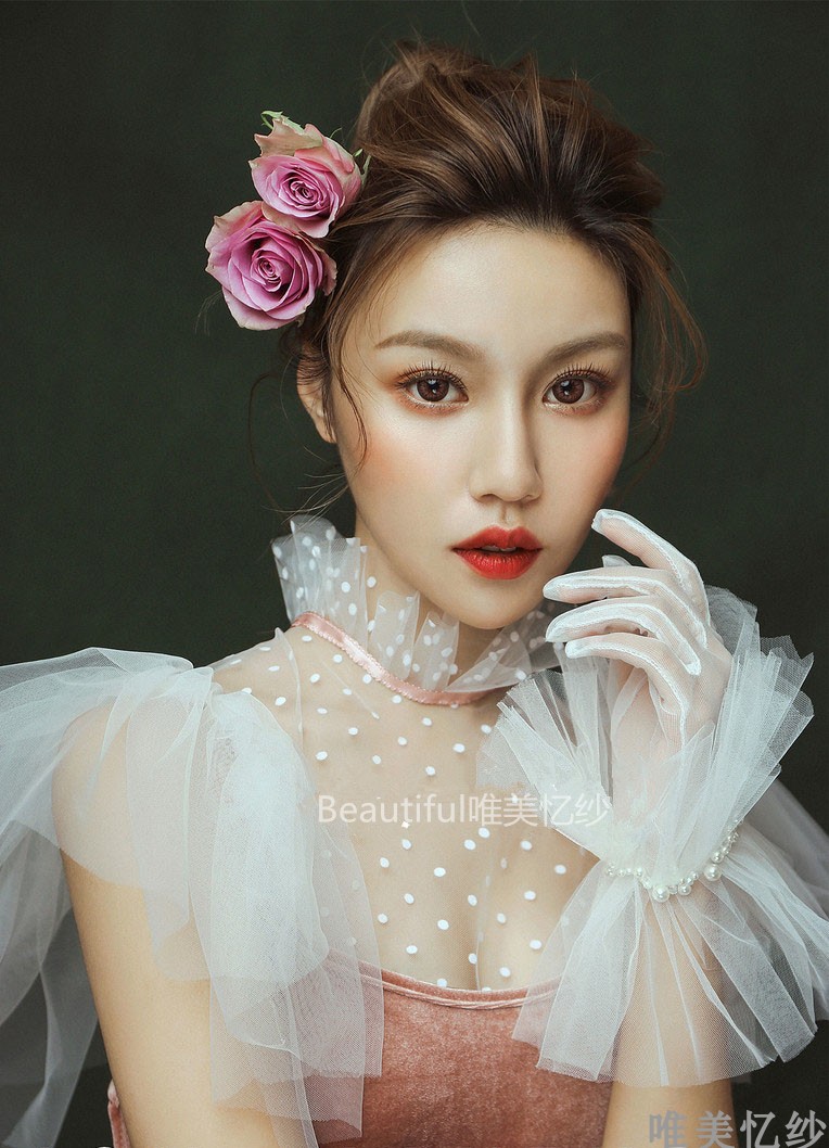 New original fairy bride wedding dress handmade pearl beaded white gauze photo translucent tulle short gloves