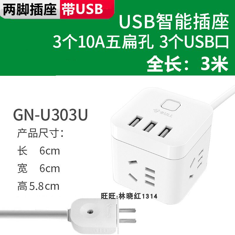 Bull two feet with usb socket plug board Two items two holes 2 feet two feet ultra-thin plug plug row plug board wiring board