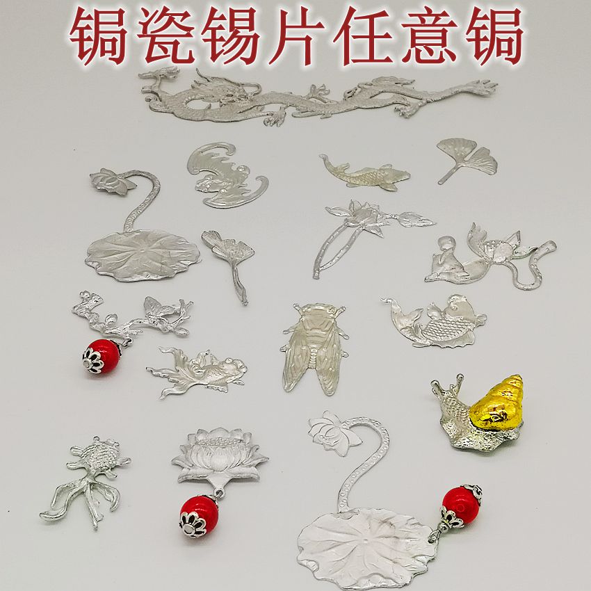 Tin Butterfly Plum Blossom with red Pearl 1 piece of tin monk lotus 1 piece of tin small gingko leaves 2 pieces of tin lotus plus red pearl 1 piece of siho lotus leaf plus red bead 1 1 piece of Siho flower lotus leaf 1 piece of siho lotus leaf 1 piece of silotus leaf