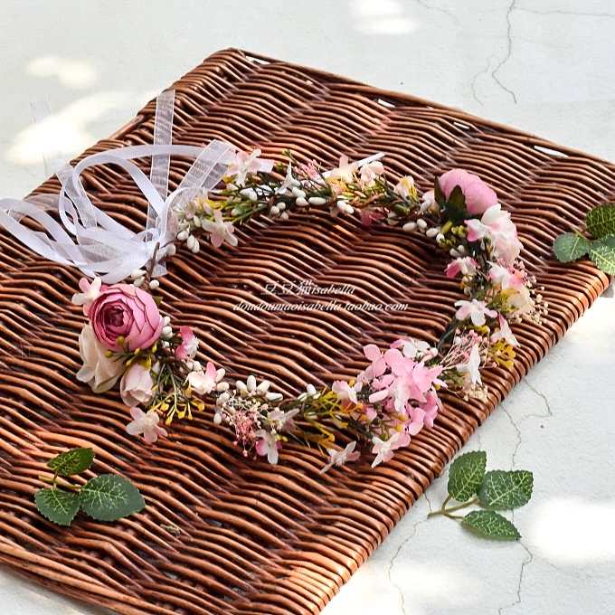 Korean-style Mori Beach Photograph Gypsophila Gypsophila Hydrangea Bride Flower Headdress Ring Stage Performance Photography Wedding Dress