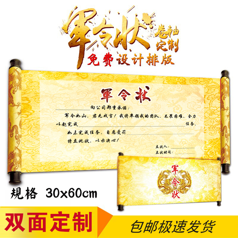Certificate of responsibility Military order Letter of worship Challenge book Certificate of honor Task book Scroll customization