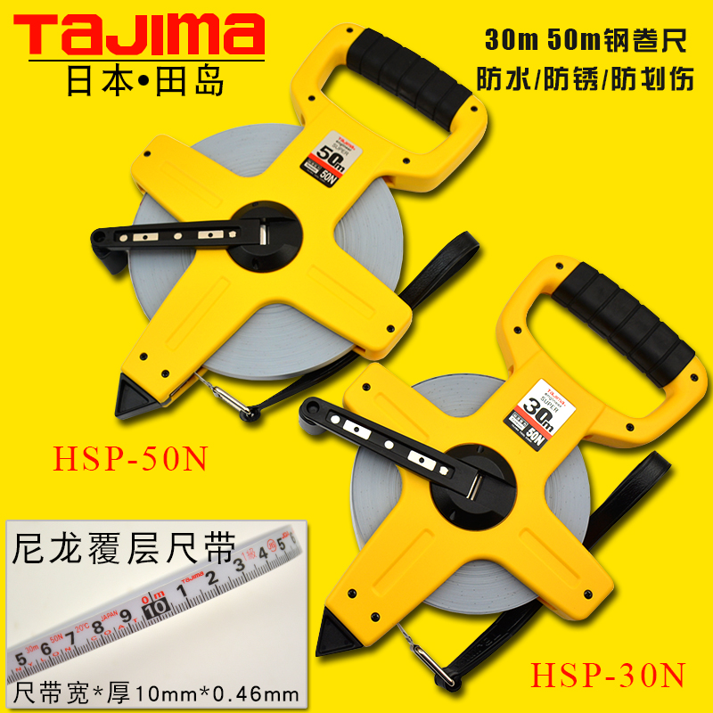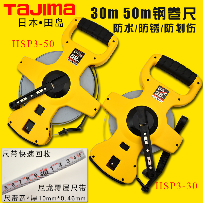 tajima long steel coil ruler 30 meters 50 meters waterproof anti-rust frame ruler Hand engineering measurement high precision ruler