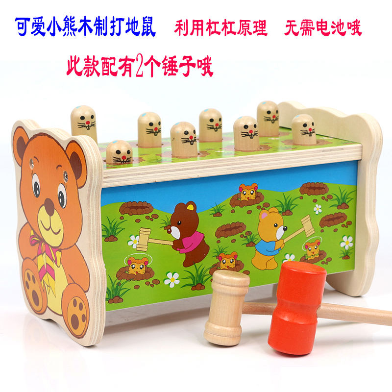 Small hammer box pottery wood square playing table sound knocking table elephant drag multi-function playing hamster frog playing table squirrel playing hamster (with music) young dele hit trapeze clever and exquisite fun playing hamster pink wooden mother
