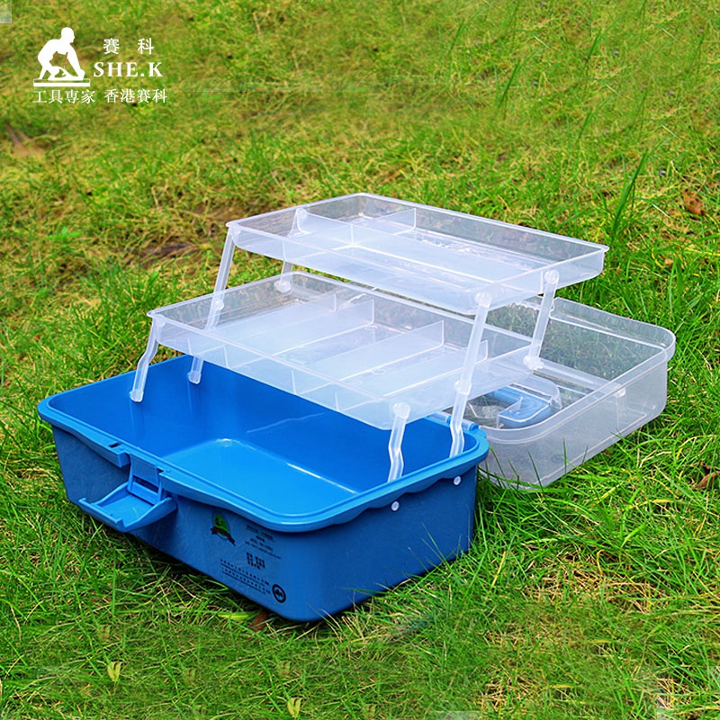 Three-layer folding toolbox Children's art box Medicine storage box Transparent plastic storage box color parts box