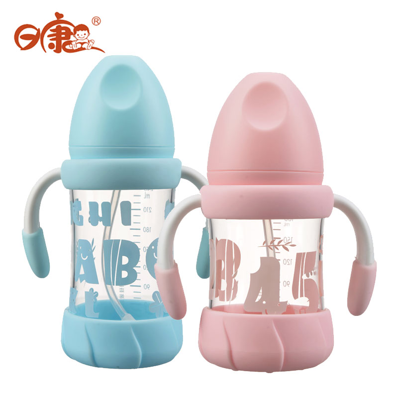 Rickang baby bottle wide diameter glass baby bottle with handle straws protective cover drop proof
