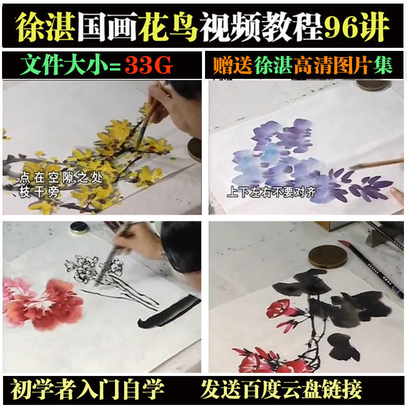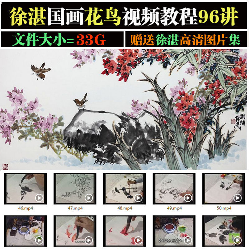 Xu Zhan flower-and-bird painting Chinese painting freehand brushwork video tutorial tutorial 96 lectures on calligraphy and painting introductory materials HD collection