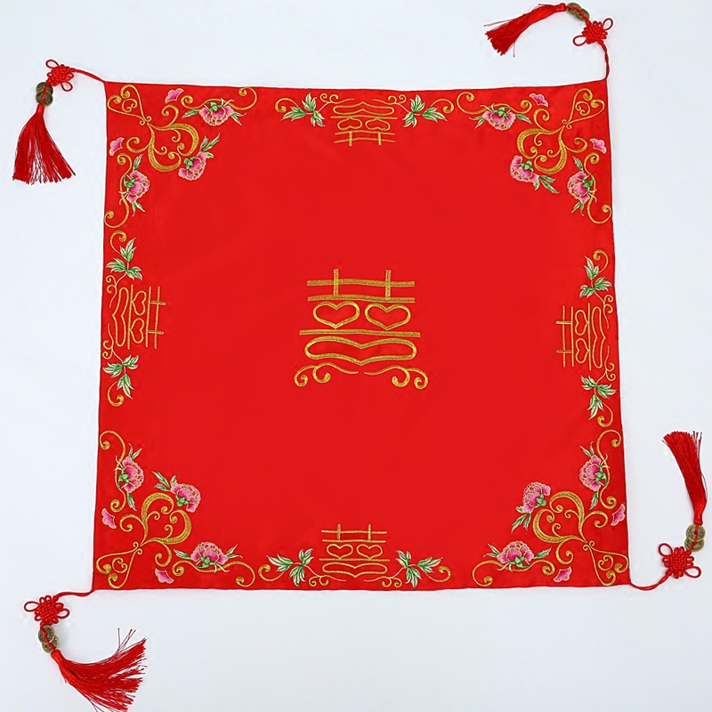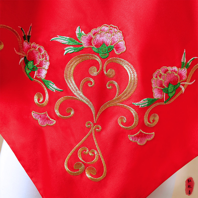 Large hijab bride turban red flowing brocade xiangyun xizi copper coin pendant Chinese embroidery Xiuhe accessories