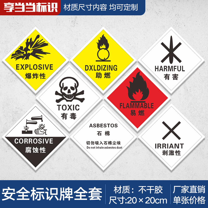 Hazardous waste identification, dangerous goods, self-adhesive label stickers, corrosive, irritating, toxic, harmful, flammable and explosive signs, dangerous goods warning prompts, notification signs customization
