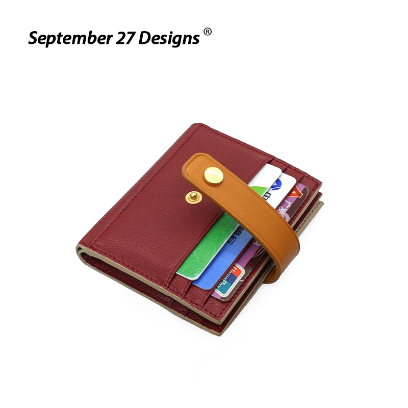 SEPTEMBER 27 DESIGNS Leather Goat Leather Women's Vertical Buckle Wallet Vintage Colorblock Small Card Holder