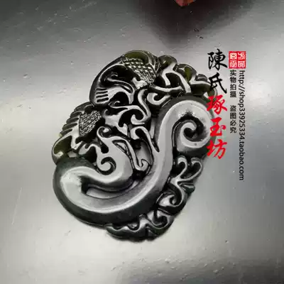 Dark green jade dragon and phoenix jade pendant Neck pendant Phoenix Qiuhuang jade pendant Men and women pendant Jade brand double-sided hollow jade pendant