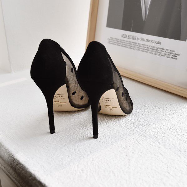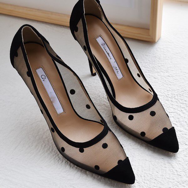 HChen Korea Handmade Custom Romantic Retro Polka Dot Mosaic Frosted Sheepskin Super High Heels