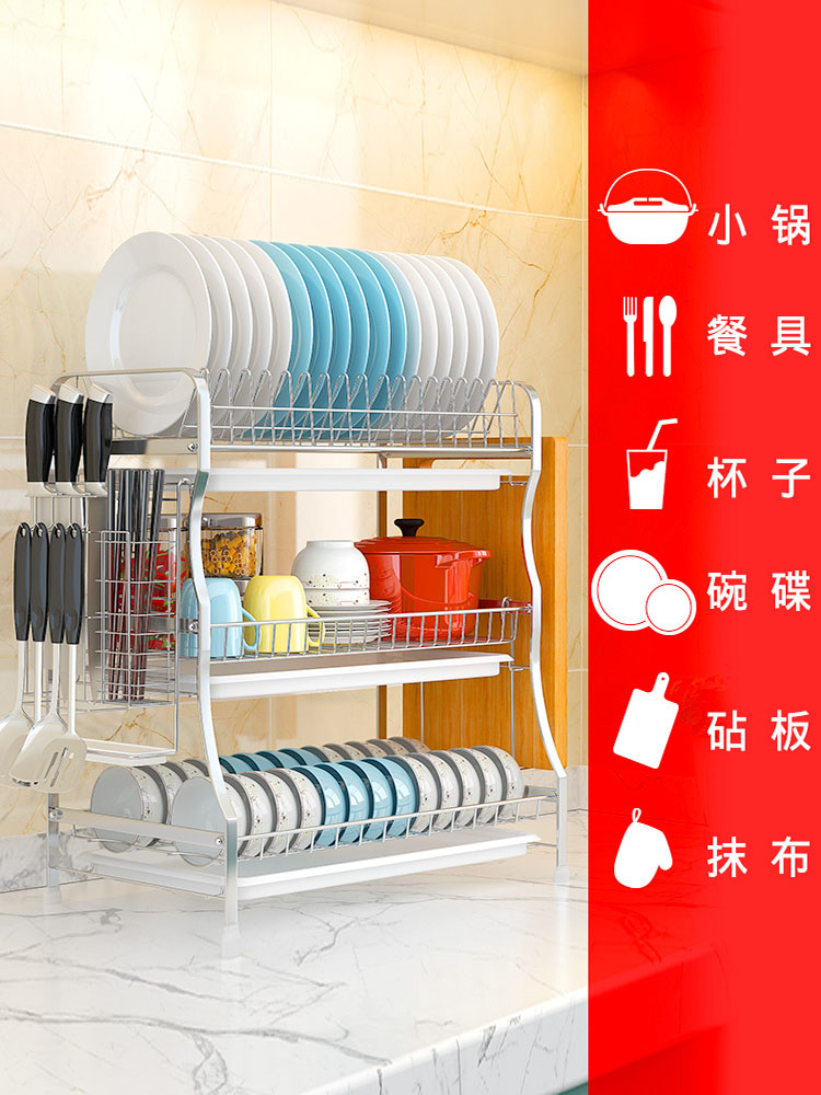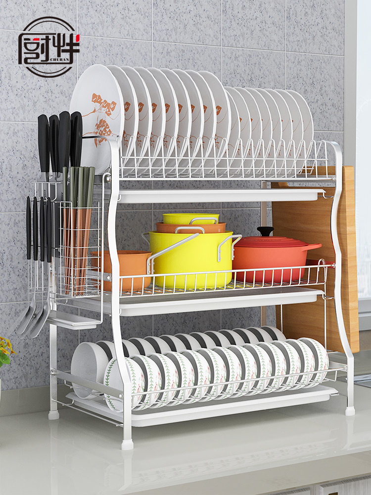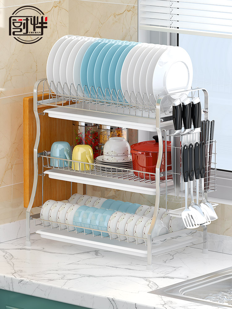 Three-tier standard dish rack (without accessories) Three-tier standard dish rack (with knife holder and chopstick holder) Three-tier standard dish rack (with chopping board rack) Three-tier standard dish rack (full set of accessories)