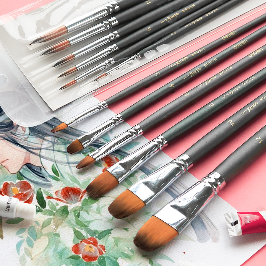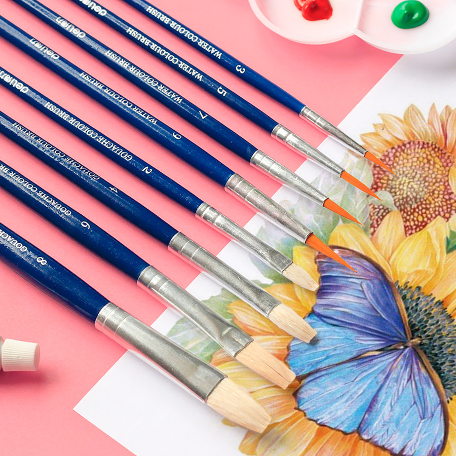4 packs of gouache brushes (2# 4# 6# 8#) 4 packs of watercolor brushes (3# 5# 7# 9#) 4 packs of gouache brushes 4 packs of watercolor brushes