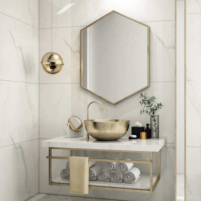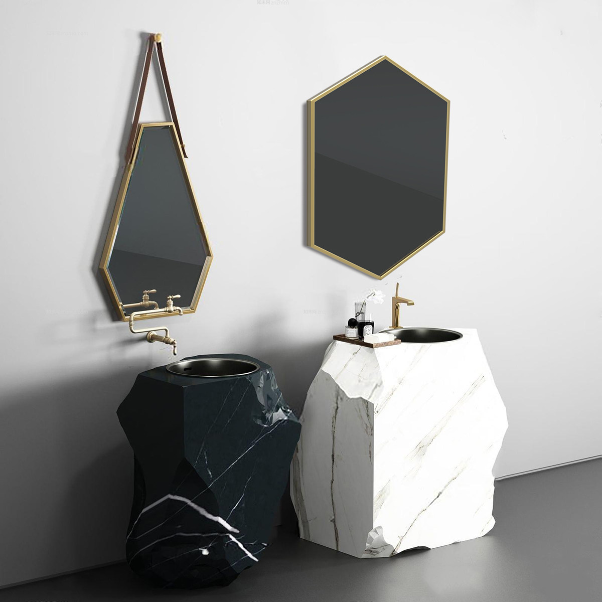 Nordic hexagonal mirror bathroom mirror mirror iron dresser decoration mirror wall hanging bathroom mirror mirror