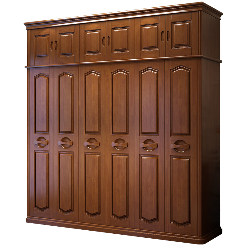 Solid wood wardrobe new Chinese style three-four-five-six-five-door large wardrobe side-by-side simple modern wardrobe bedroom furniture