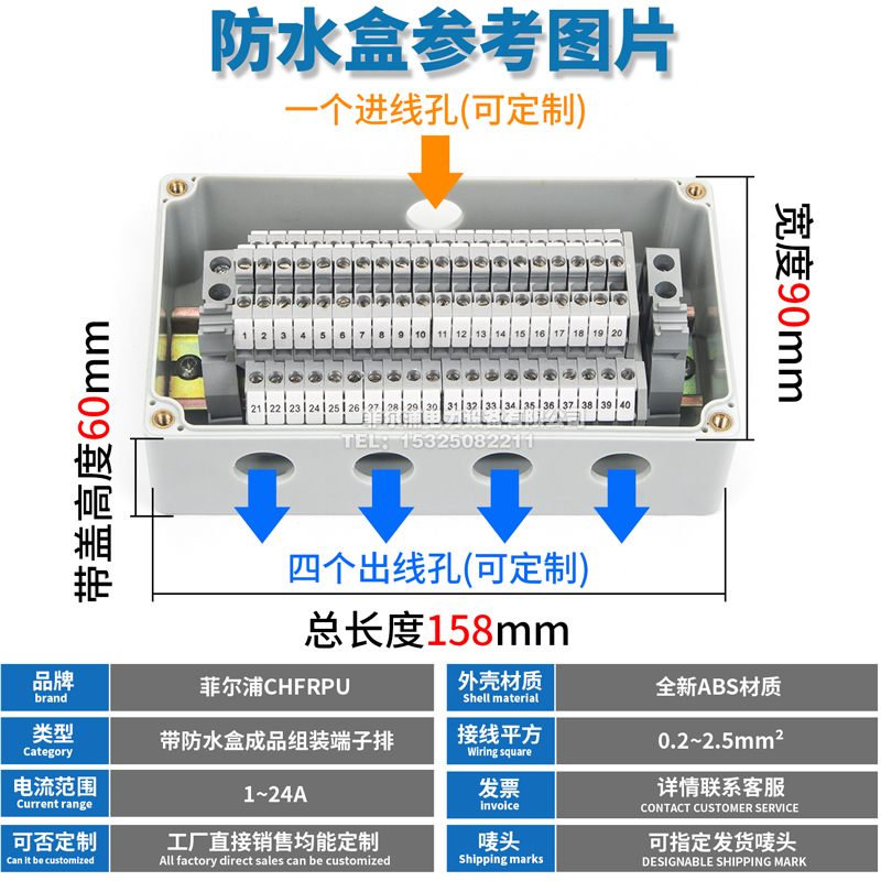 Filpu finished assembly terminal row 40 bits 0 40 5MM 5MM squared with waterproof case 158X90X60