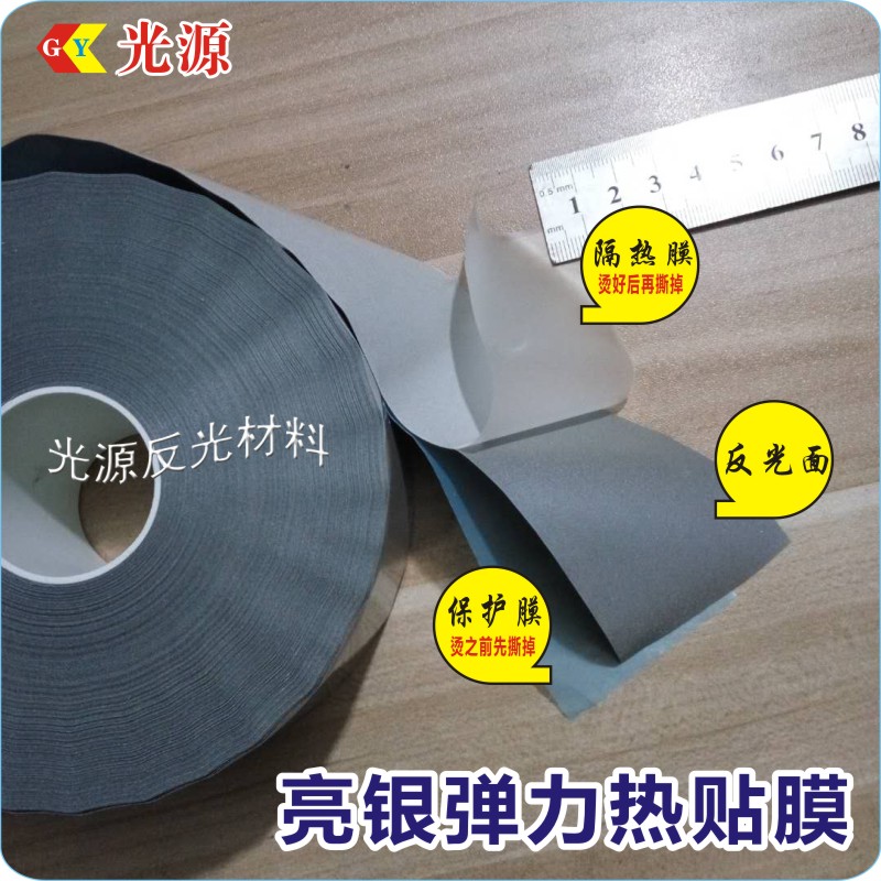 Bright silver elastic heating film clothes knitwear high temperature pressing heat transfer tape 1cm 5CM luminous reflective strip
