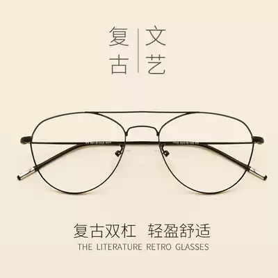 Retro double beam toad glasses large frame elliptical glasses frame female personality Harajuku with glasses myopia ultra-light flat mirror male