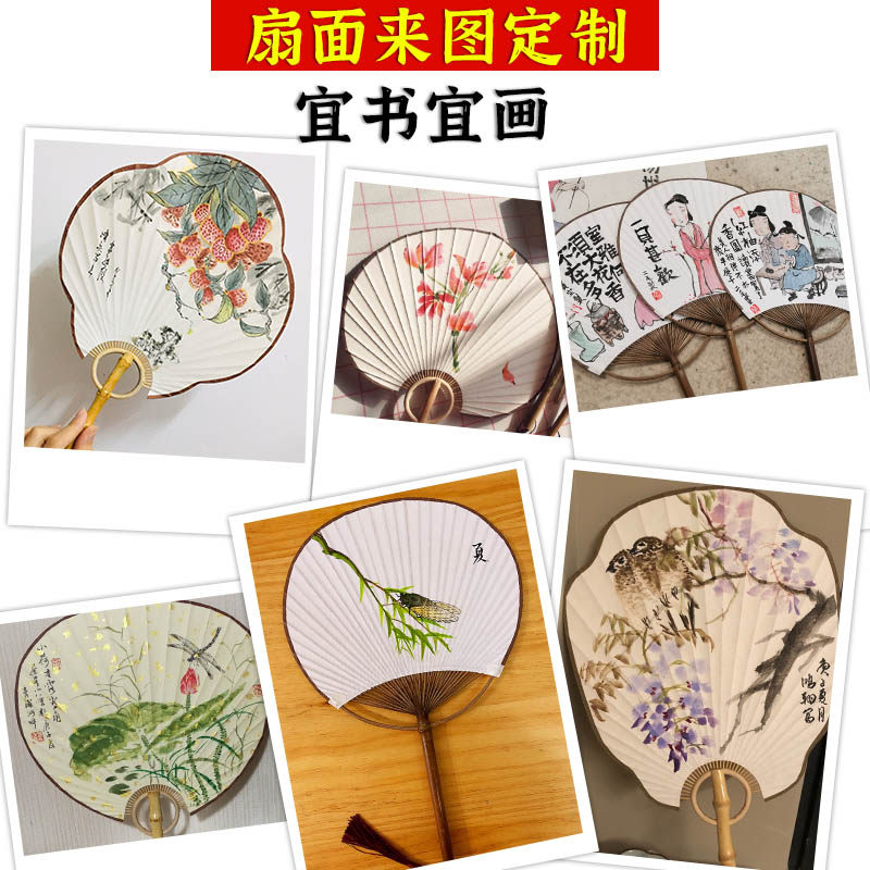 Day style group fan and wind pure white half raw cooked rice paper hand painted Japanese Winner red blank fan womb fan round
