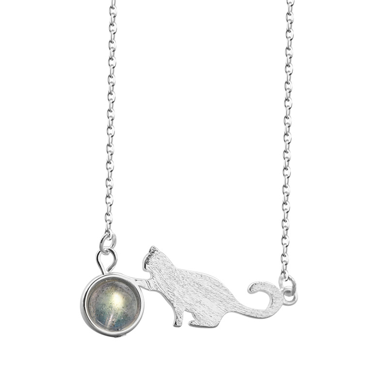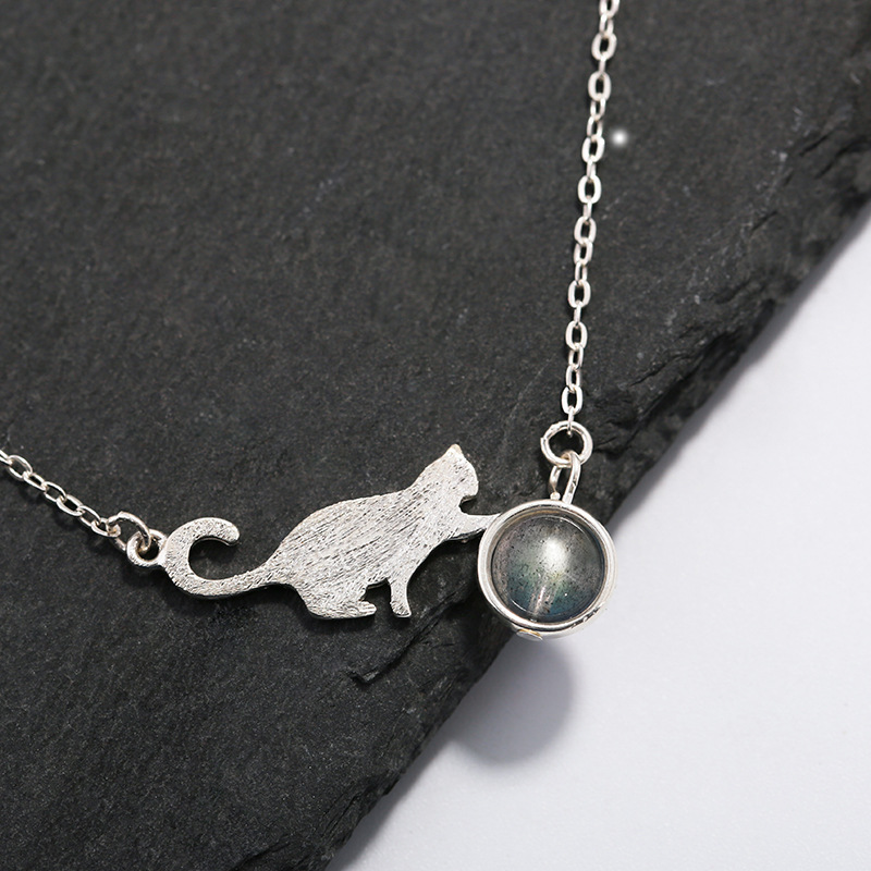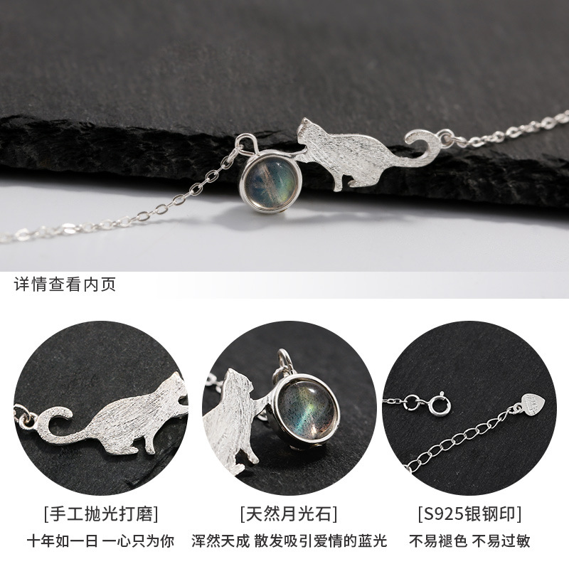 Cat Moonlight Stone Necklace Woman Pure Silver Day Korea Brief Student Lock Bone Chain Female Korean Version Sweet Mesen Ensemble Little Fresher