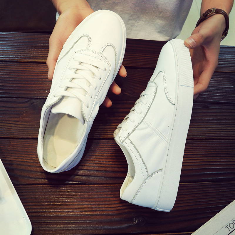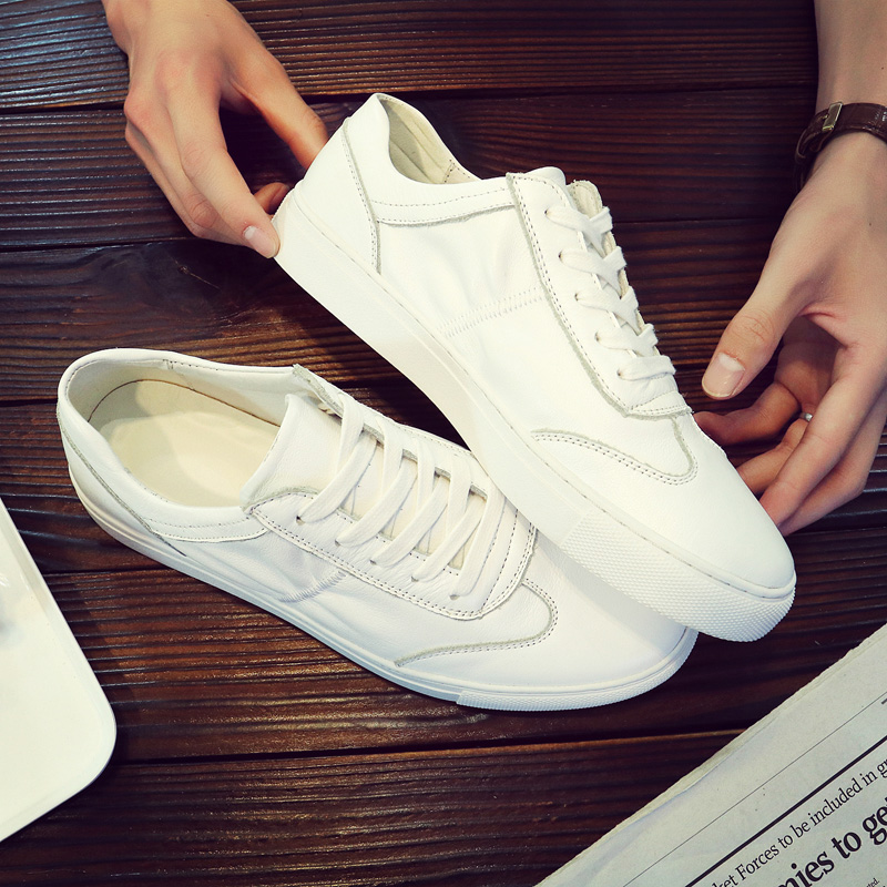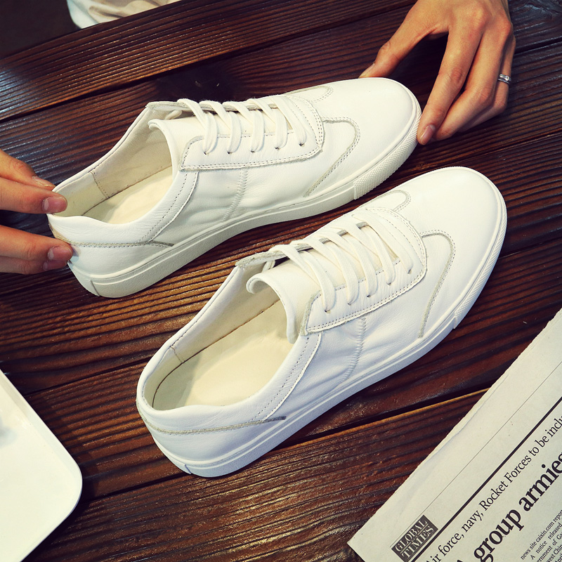 Leather white shoes men's leather flat shoes 2021 summer breathable Korean version all-match basic white casual shoes trend