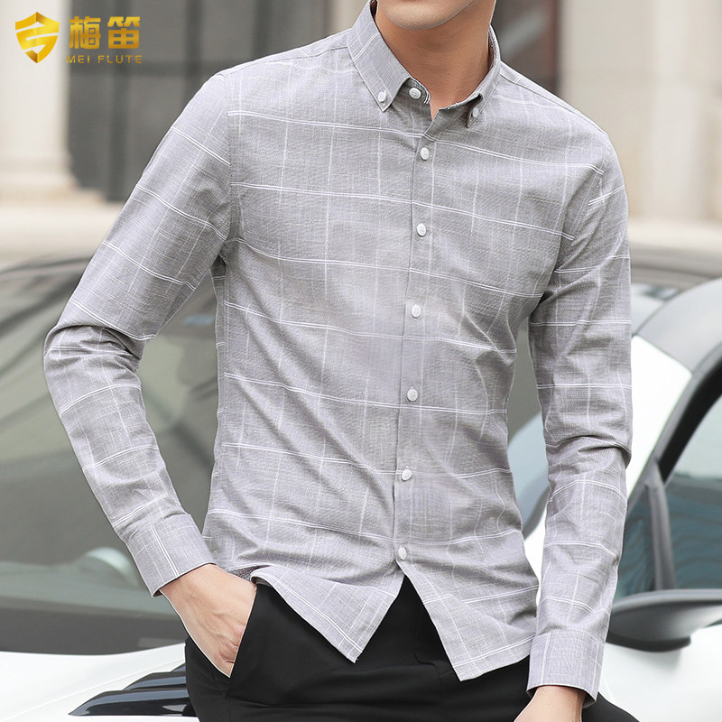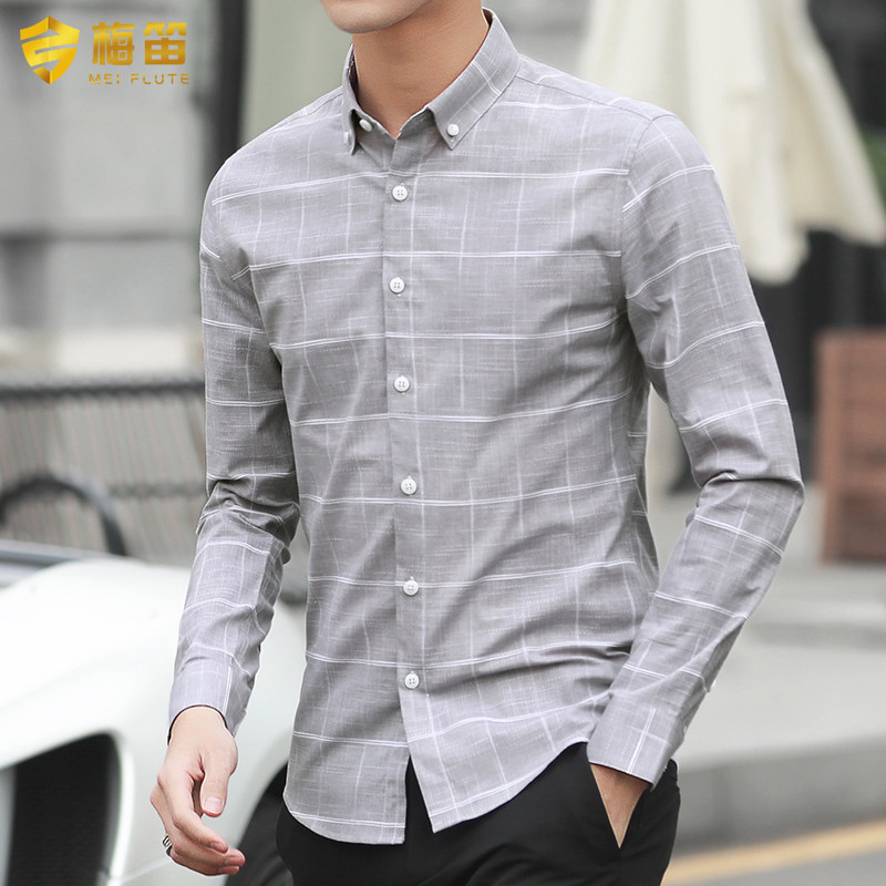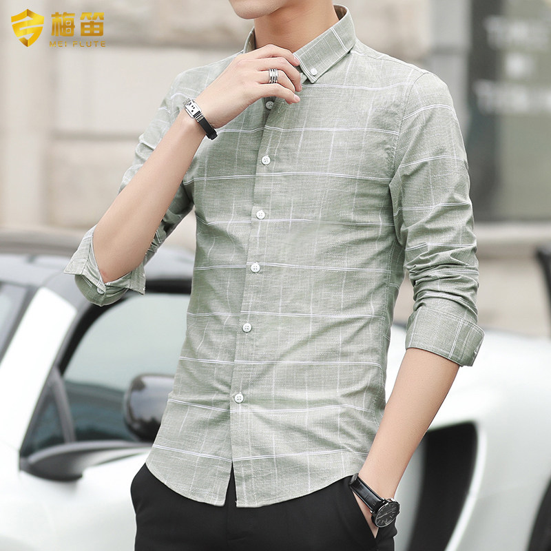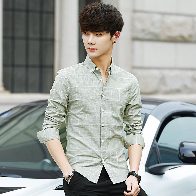 Plaid shirt men's slim new Korean youth trend handsome cotton casual summer long sleeve shirt shirt