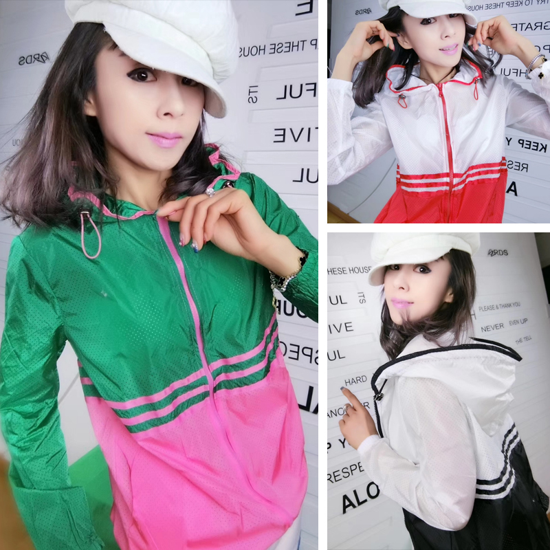 Korean version of thin zipper sun protection clothing women 2022 spring and summer fashion new color contrast short coat sun protection clothing large size women's clothing