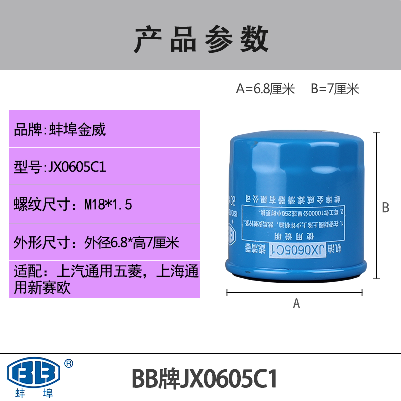 Bengbu Jinwei Bengbu BB brand is suitable for Wuling Hongguang supporting machine filter element JX0605C1 piece number 9025229