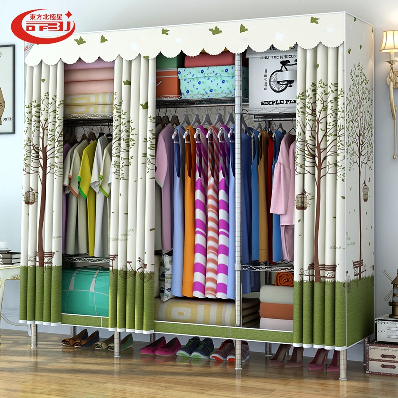 Simple cloth wardrobe assembled strong and durable steel pipe thickened all-steel frame rental house home bedroom storage hanging wardrobe