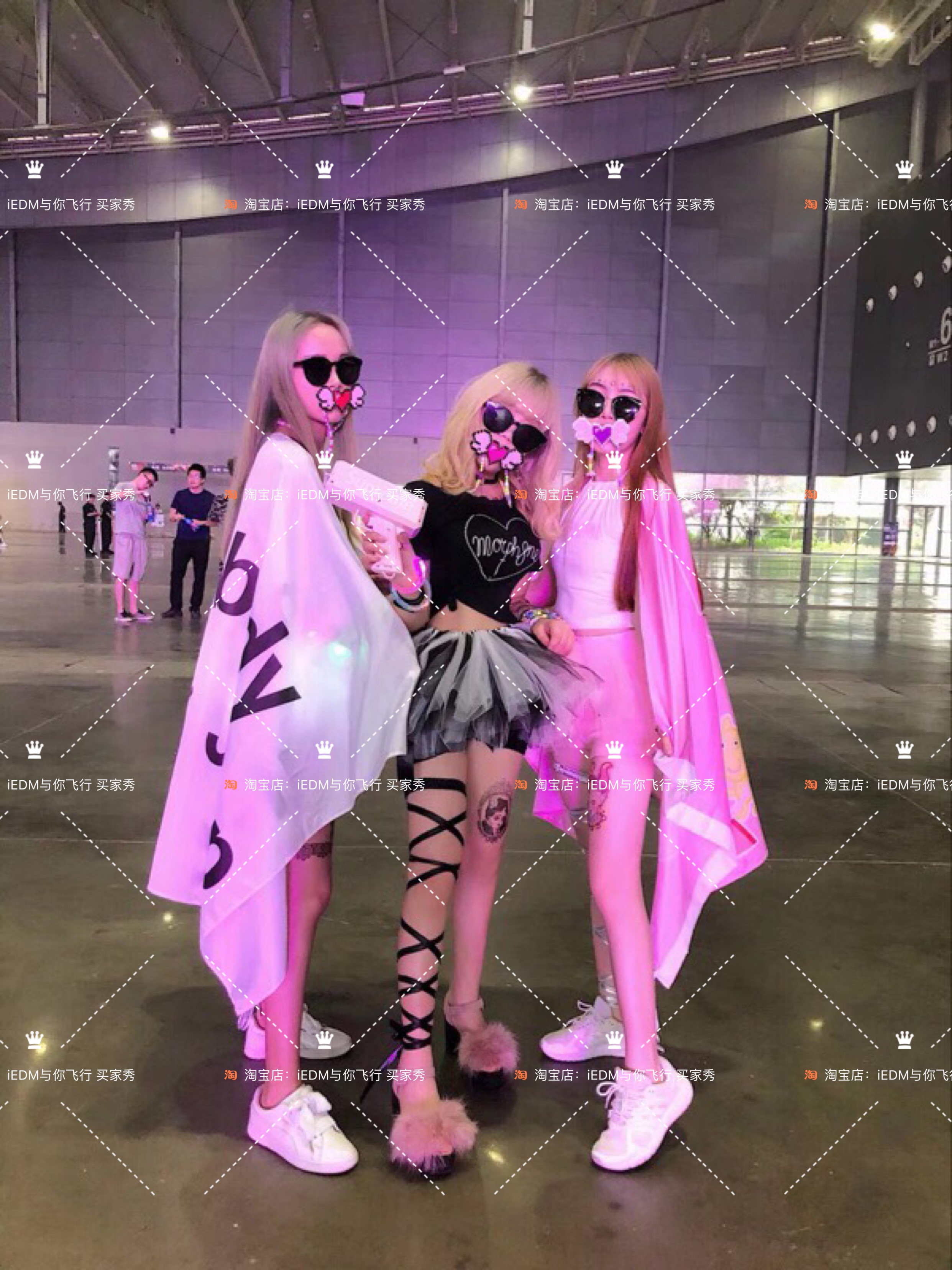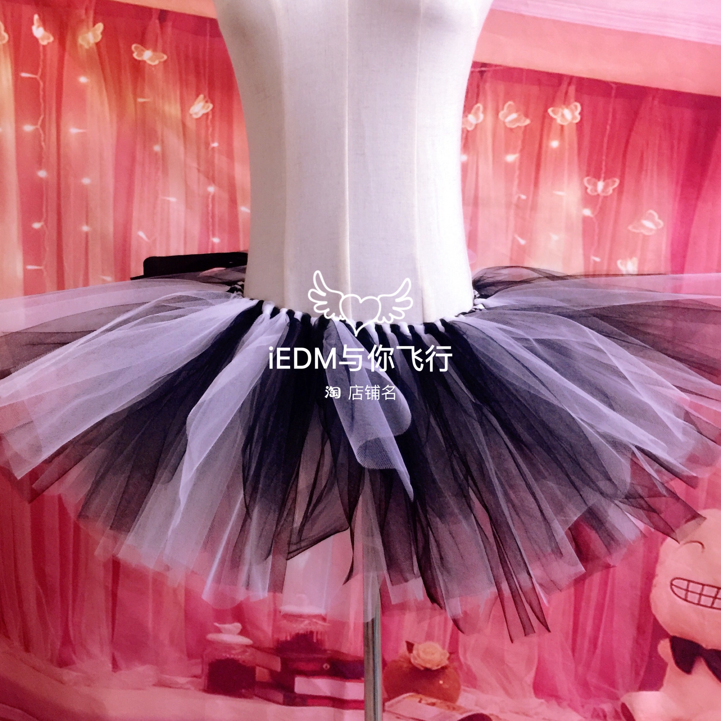 Black and white mixed lap luminous dress-triple flash light
