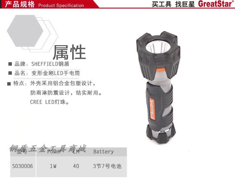 Steel shield S030008 portable super bright deformed diamond glare LED flashlight outdoor climbing riding waterproof and shockproof