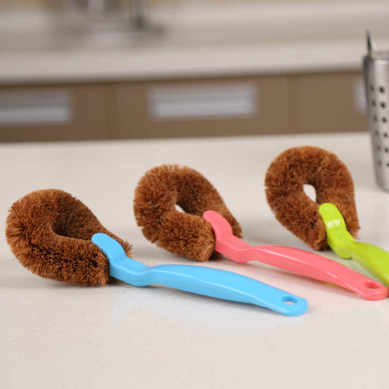 Beautiful Coconut Palm brown with handle pan brush Kitchen dishwashing Clean powerful decontamination cleaning without sticking to oil brushes