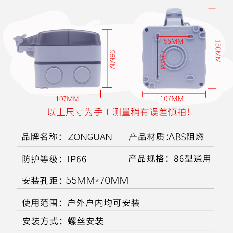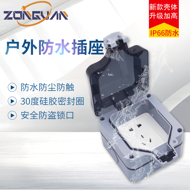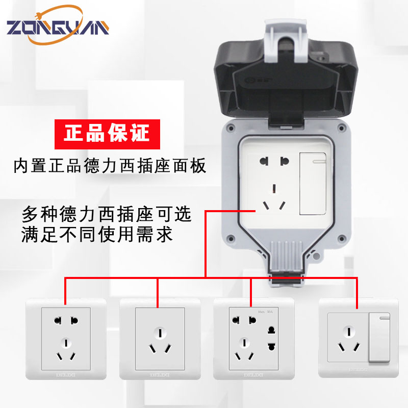 Outdoor bathroom wall waterproof plus high socket Deli West panel anti-rain open five-hole power supply IP66 surface mount