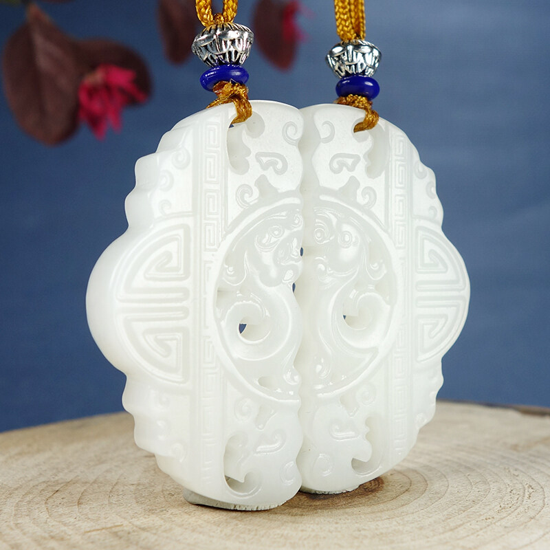 White Yusei family and Tian jade goat fat jade pendant lovers Yupei a pair of dragon and phoenix men and women with a jade pendant jade pendant