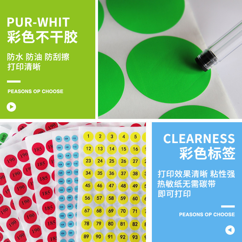 Color round thermal label paper Diameter 10 15 25 30 40 45 50 60 70mm three air defense white small circle marker 6cm red yellow blue green sealing barcode printing sticker sticker
