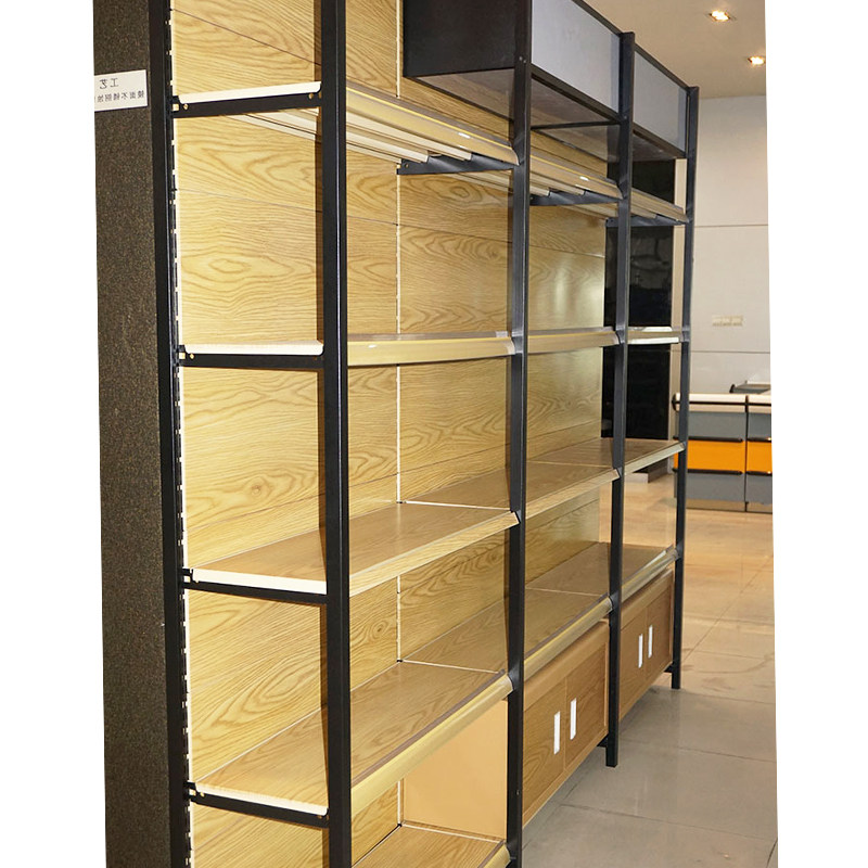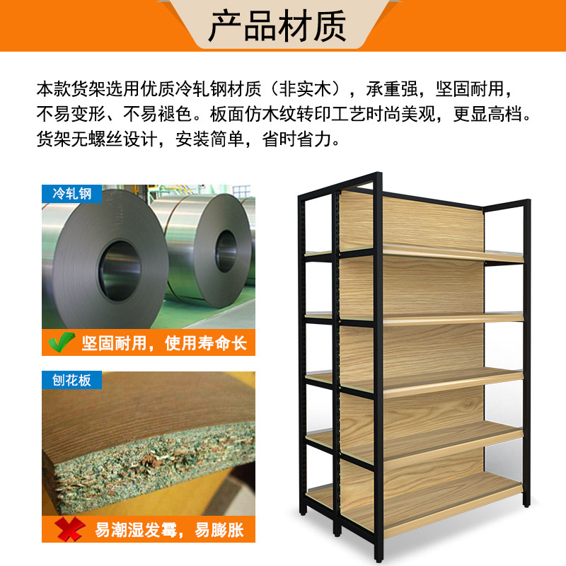 Convenience store single-sided iron transfer printing wood grain color steel wood Supermarket shelf display rack Display rack shelf wine cabinet