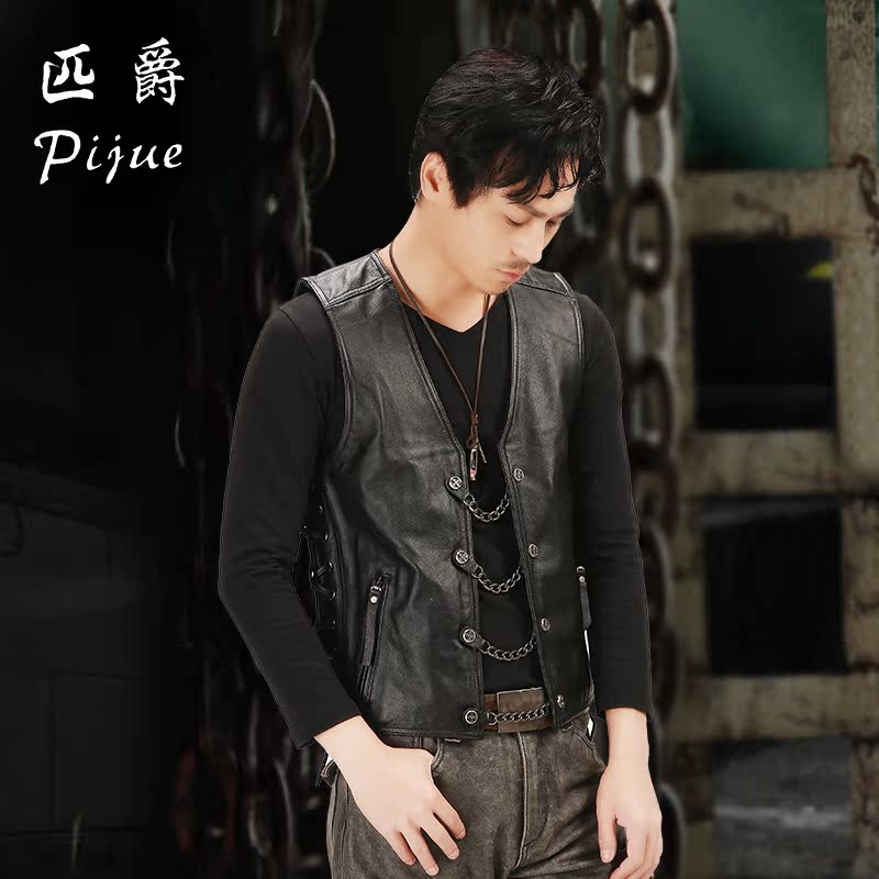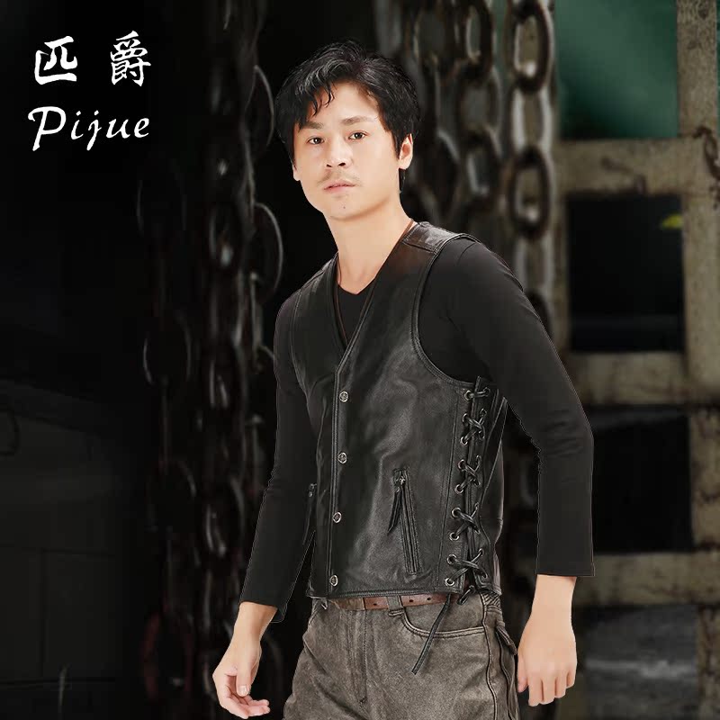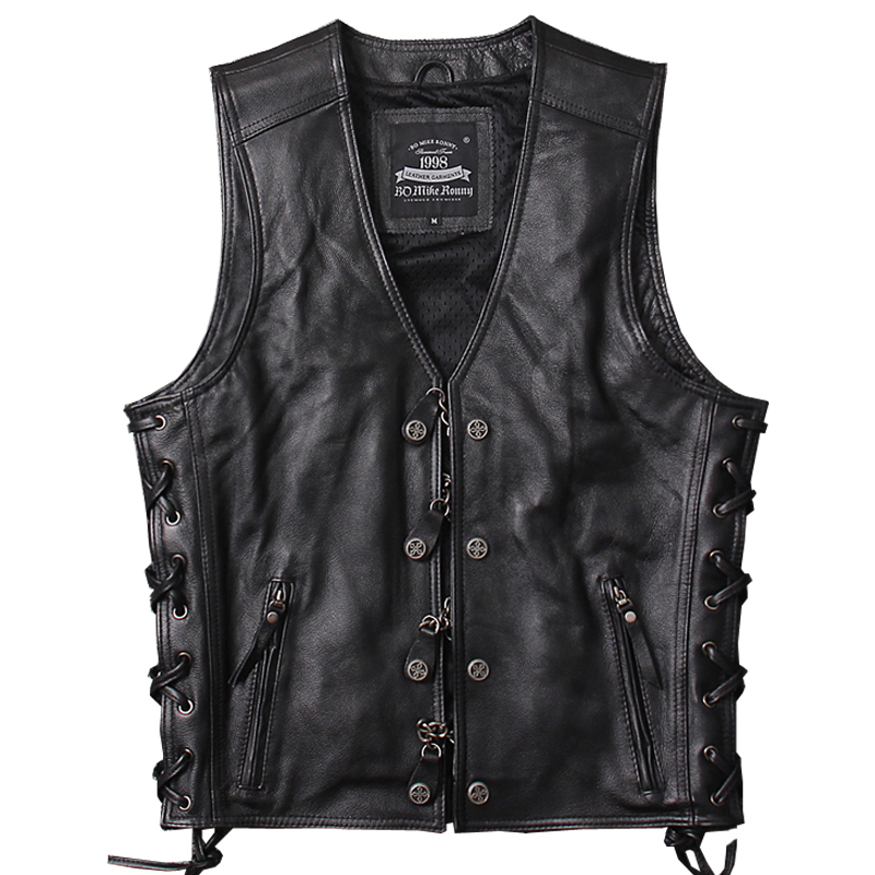 Baron 2020 new men casual genuine leather waistcoat Rider Locomotive Headlayer Bull Leather Vest With Sleeveless Leather Clothing