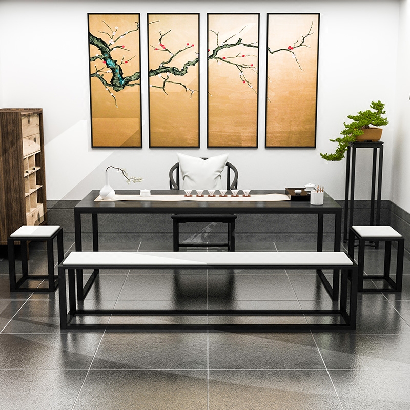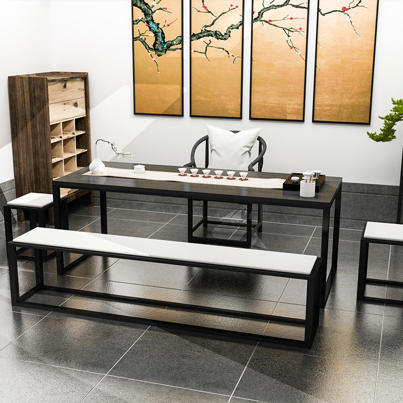 New Chinese style wrought iron solid wood bubble tea table Zen Kung Fu tea house tea house clubhouse solid wood tea table and chair combination